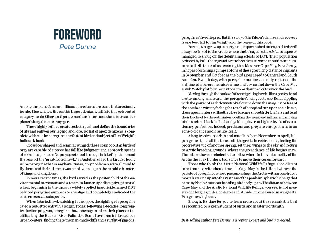 Jim Wright is a prize-winning journalist who has written about peregrines for two decades. He monitors nesting peregrines and other raptors for the state of New Jersey and is a marsh warden for a nature refuge in New Jersey. His other books include The Real James Bond.